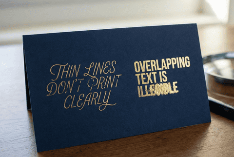 Textured or uncoated papers are a different story. The foil may not be able to settle into the small "valleys" of the paper’s texture. This can create a broken or rustic look. Sometimes this is exactly the effect a designer wants, but it is an important outcome to be aware of. If you plan to use a heavily textured stock, it is always a good idea to run a test first. For very fine details on a textured stock, we might suggest debossing the area first to create a flat surface, then applying the foil.