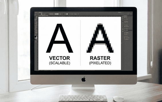 Think of it this way: a vector file is like a recipe. You can use it to bake a small cookie or a giant cake, and both will be perfect. A raster file1 (like a JPEG or PNG) is like a photo of a cake.